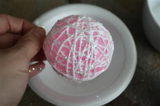 I must do this. I absolutely love the look. Here's the site to give credit to: http://www.viewalongtheway.com/2011/12/glittery-snowball-tutorial/